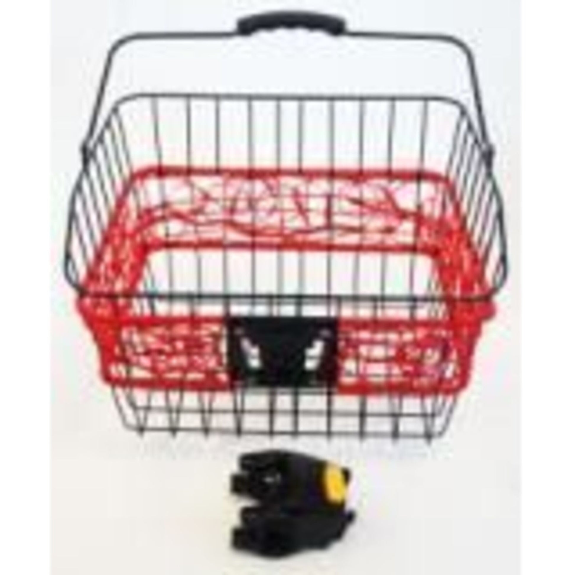 BASKET - Front, Multifit Quick Release Bracket, featuring a carry handle, in black with red accents, measuring 36cm x 30cm x 22cm.